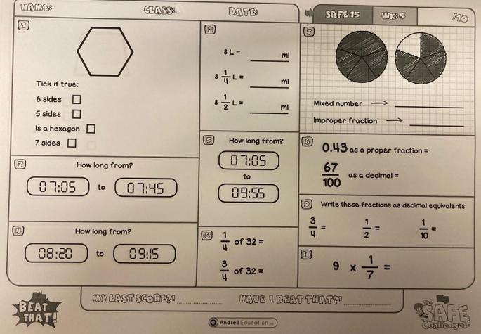 Here is the SAFE maths sheet you would have been doing on Tuesday afternoon. If you can, print it out and complete it, or write your answers on a piece of paper. Make it clear which SAFE and week it is that you have completed. Then, upload it to your work folder on Purple Mash for Mrs Feeney to mark.