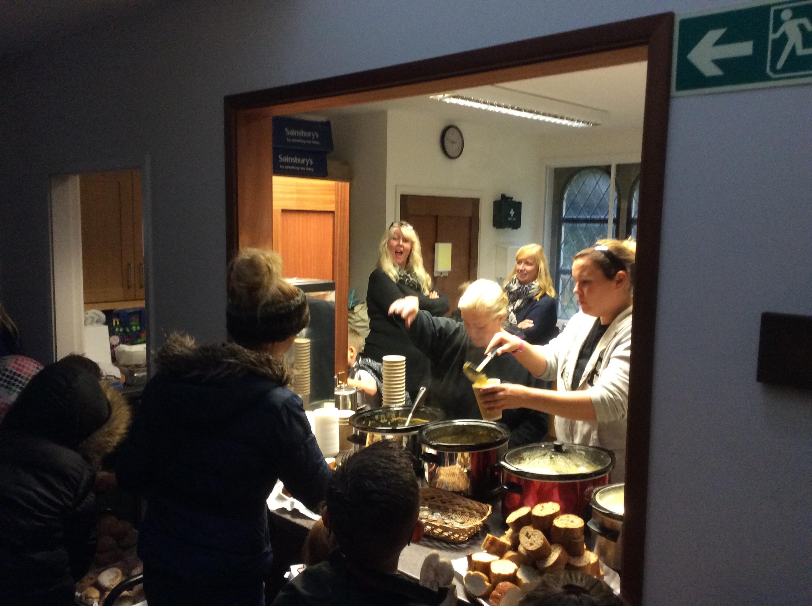 On Thursday our volunteers helped the children chop, peel and prepare vegetables donated by our families. They then gathered at the church in the morning surrounded by many slow cookers and soup pans and together created a feast for all to enjoy.